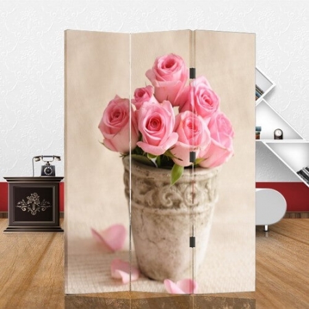 3-dílný paraván Sedm růží s fotopotiskem z obou stran.