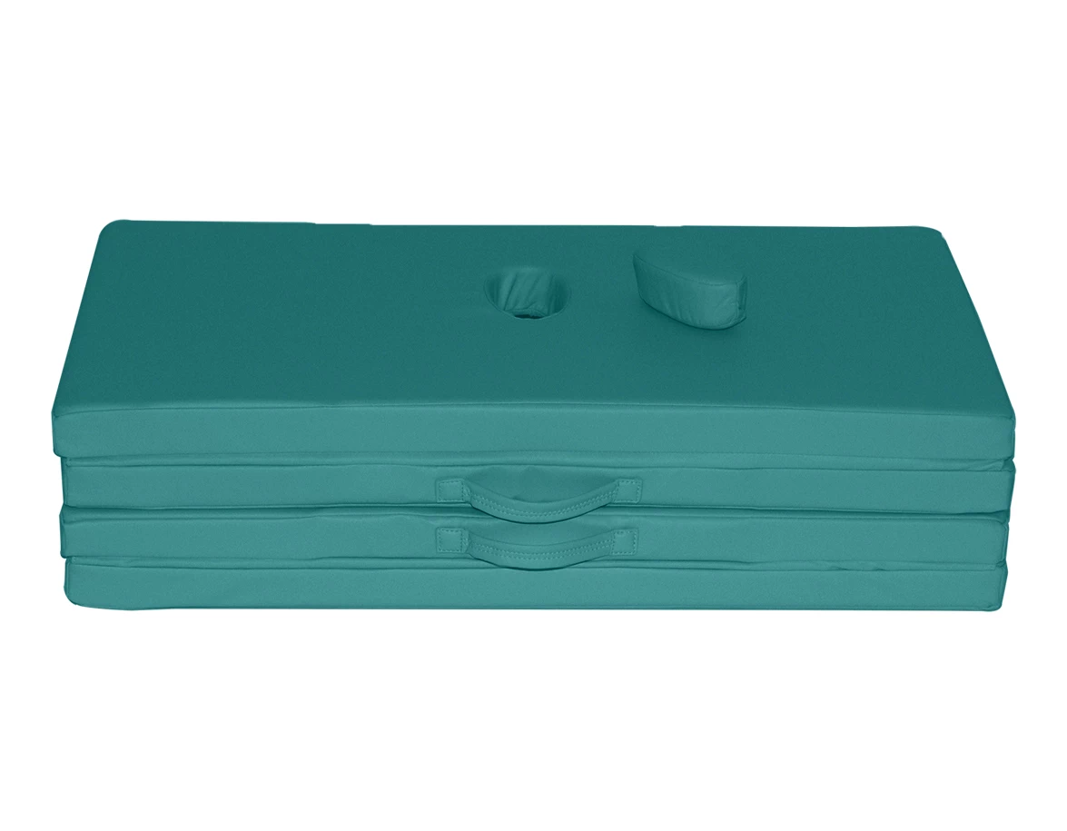 Dvě všitá poutka po stranách usnadní přenášení. Podložka je dodávána s taškou, kterou ocení zejména mobilní maséři a fyzioterapeuti. Vrchní díl má otvor na obličej se zátkou.