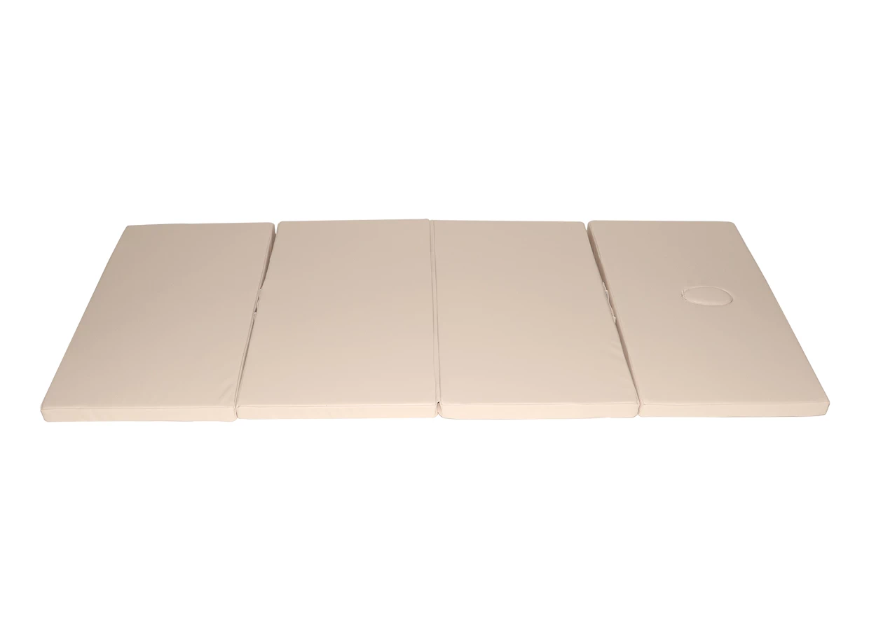 Univerzální skládací podložka sestávající ze čtyř dílů. Její 5 cm tlustá molitanová výplň s vysokou hustotou je odolná proti deformaci i při dlouhodobém používání. Potah je vyroben z tzv. soft-touch koženky bez obsahu ftalátů.