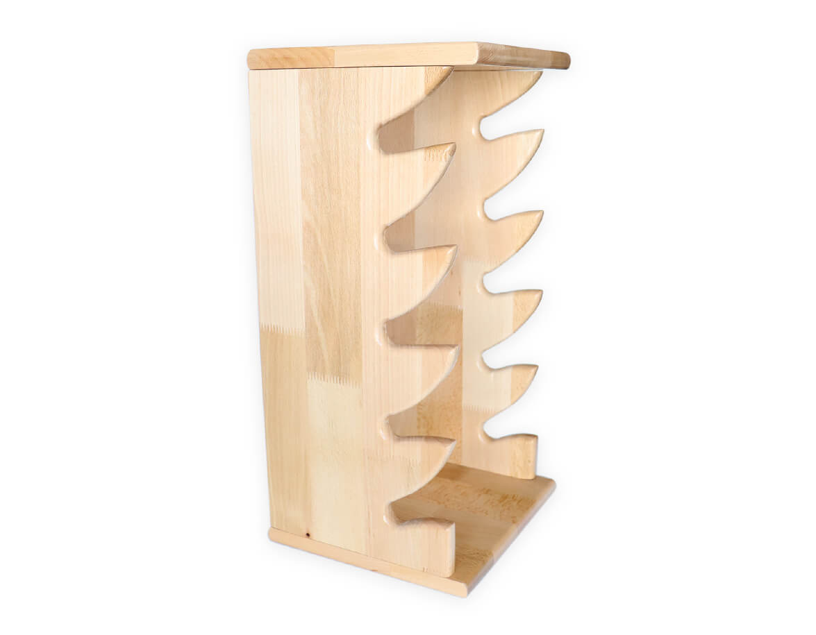 Police z lakovaného bukového dřeva pro odkládání válečků a pomůcek pro maderoterapii. Praktická police má 5 zářezů po obou stranách, do kterých si uložíte válečky pro maderoterapii. Horní a spodní polička regálu poskytují prostor pro další vybavení pro maderoterapii jako jsou baňky nebo stěrka.