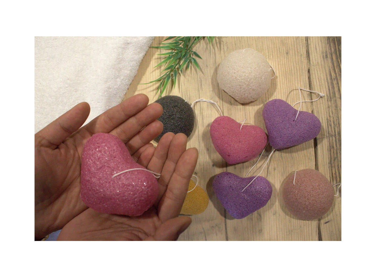 Japonská houba konjac růžová, vyrobená z rostlinných vláken kořene Amorphophallus Konjac, se tradičně používá k čištění obličeje. Je ohleduplná ke všem typům pleti a díky měkké a jemné textuře je vhodná pro citlivou pokožku. Houbička je modelována do tvaru srdce a velikostí padne přímo do dlaně. Tenký motouz zajišťuje bezpečné držení během používání a díky němu lze houbu zavěsit a nechat uschnout.