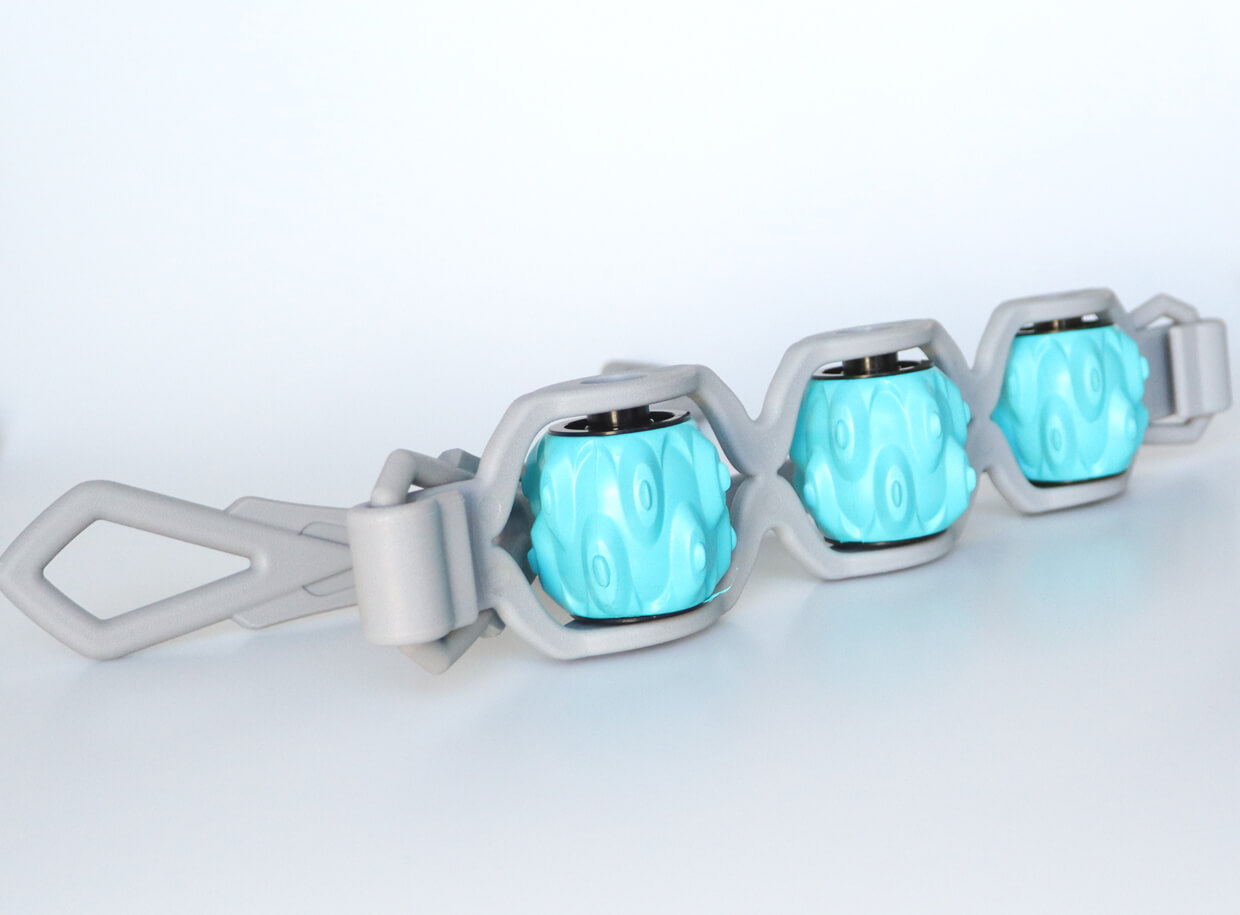 Pružný masažér se třemi masážními válečky pro okamžitou úlevu od bolestí svalů a kloubů.