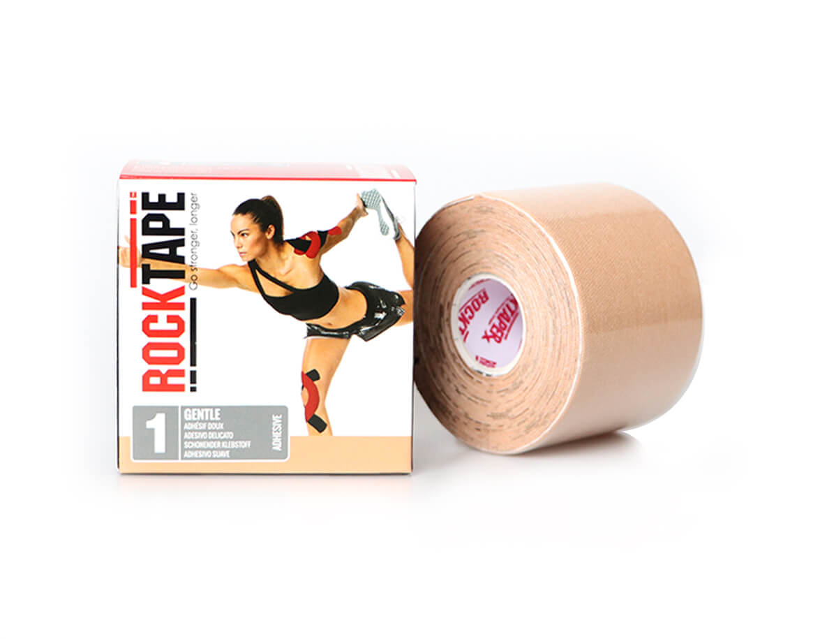 Kineziologický tejp RockTape z bavlny a nylonu. Díky nižšímu obsahu lepidla je vhodný také pro lidi s citlivou pokožkou, děti či těhotné ženy.
