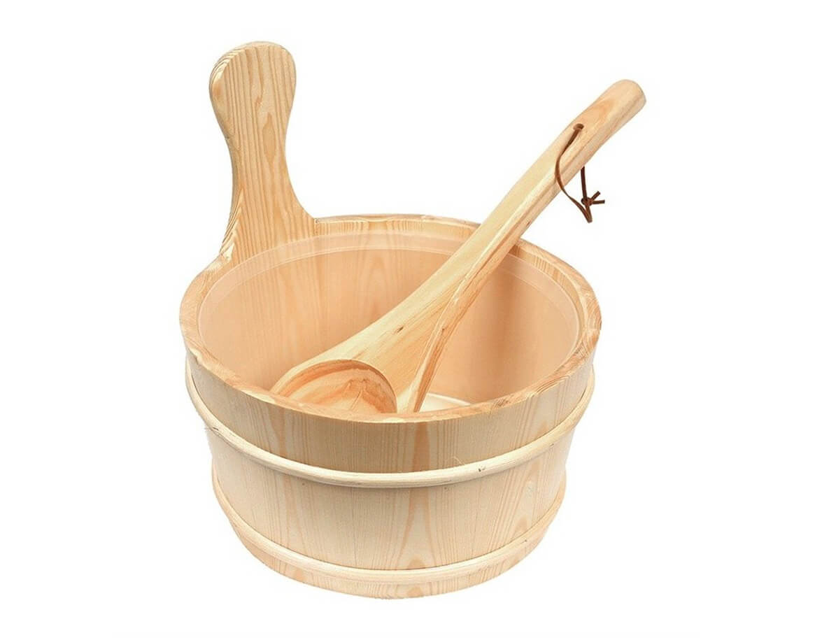 Saunový kbelík s naběračkou je základní výbavou každé sauny. Do kbelíku se nalévá směs vody se saunovými esencemi a tou se následně pomocí naběračky zalévají kameny v sauně. Může posloužit i k namáčení saunových metliček k masáži během saunování.