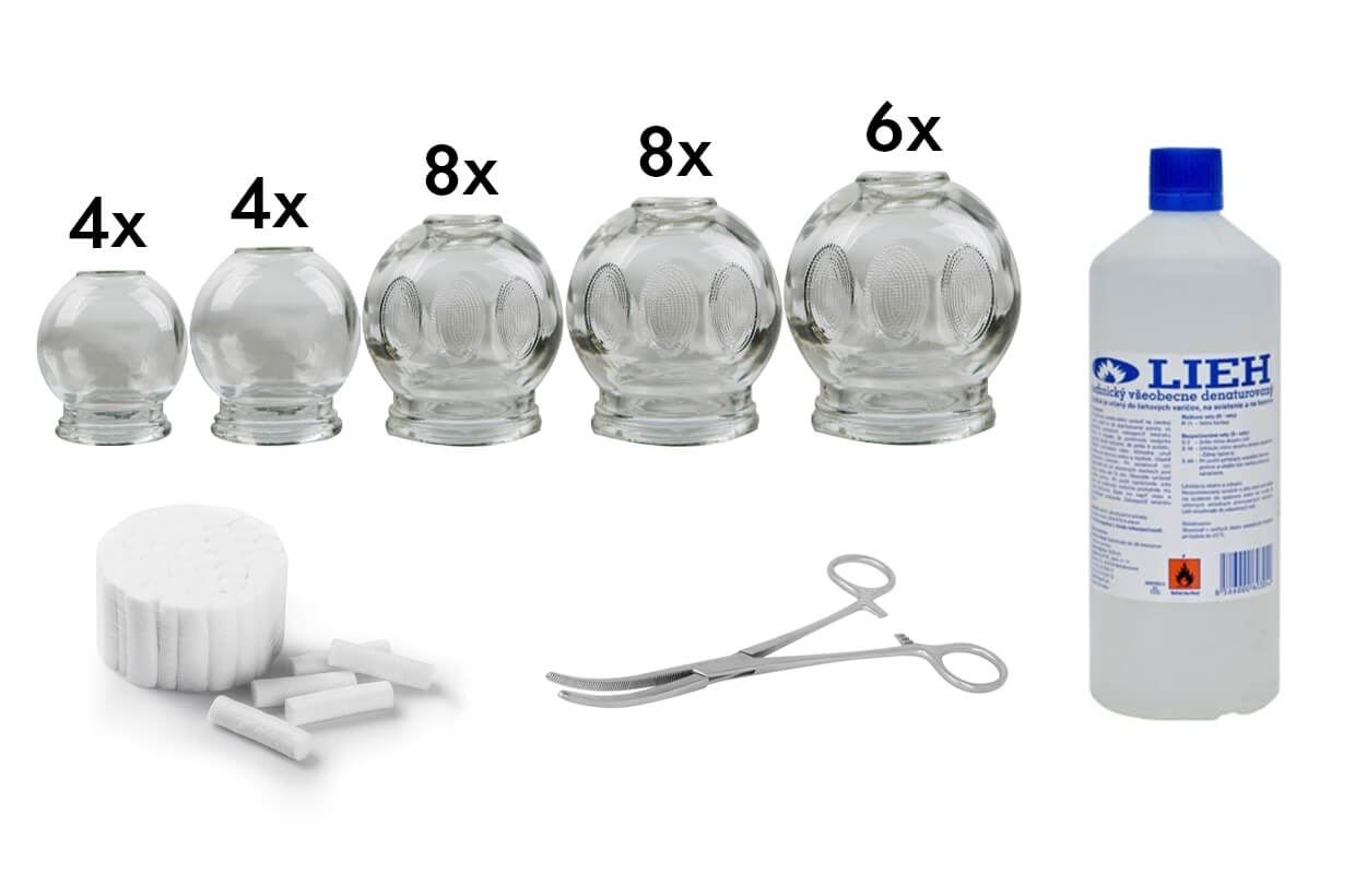 Výhodný set se slevou 10% vás vybaví vším, co masér začínající s baňkováním potřebuje. Baňkování je součástí čínské tradiční medicíny. Stále více klientů zná blahodárné účinky baňkování na uvolnění a regeneraci svalstva. Skelné baňky se nahřívají ohněm. Práce s baňkami je dovednost, jejímž prostřednictvím ví terapeut zpestřit svou nabídku a zintenzivnit účinky masáže.