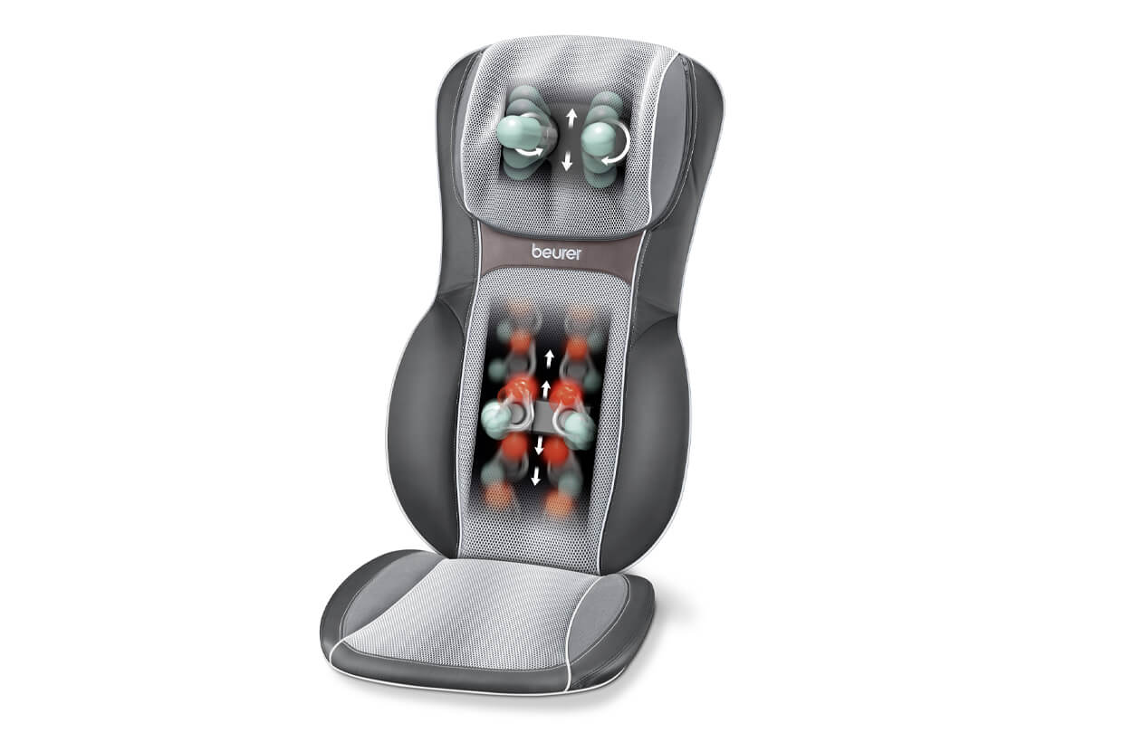 Masážní podložka je ergonomicky tvarována, snadno se ovládá, můžete si zvolit hloubkovou nebo shiatsu masáž. Má 2 rotační shiatsu masážní hlavice krku, na zádové části 4 rotační masážní shiatsu hlavice.