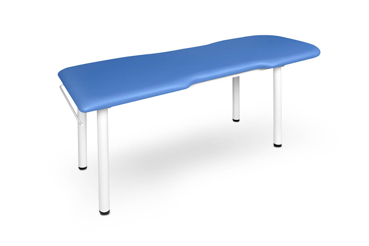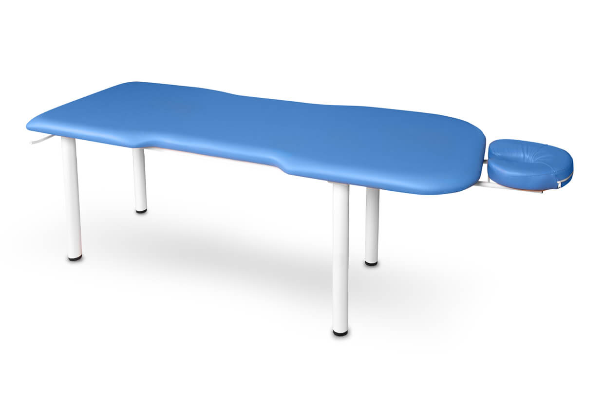 Stabilní a pohodlné jednodílné fyzioterapeutické a masérské lehátko s pevnou výškou. Lehátko je pohodlně čalouněné 4 cm hrubým molitanem a kvalitní, snadno čistitelnou koženkou a vybavené výškově nastavitelnými protiskluzovými nožičkami a držákem na 50 cm plachty.