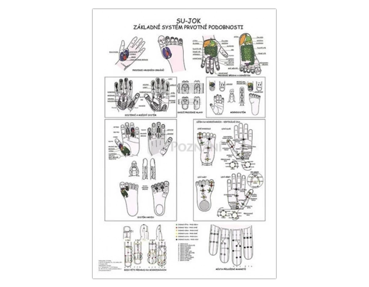 Su Jok je ozdravná metoda založená na podobnosti systémů těla s body na rukou, chodidlech, prstech a článcích prstů. Tato mapa nabízí přehled těchto bodů, se základním popisem na dlaních, prstech na rukou, ploskách a prstech na nohou.