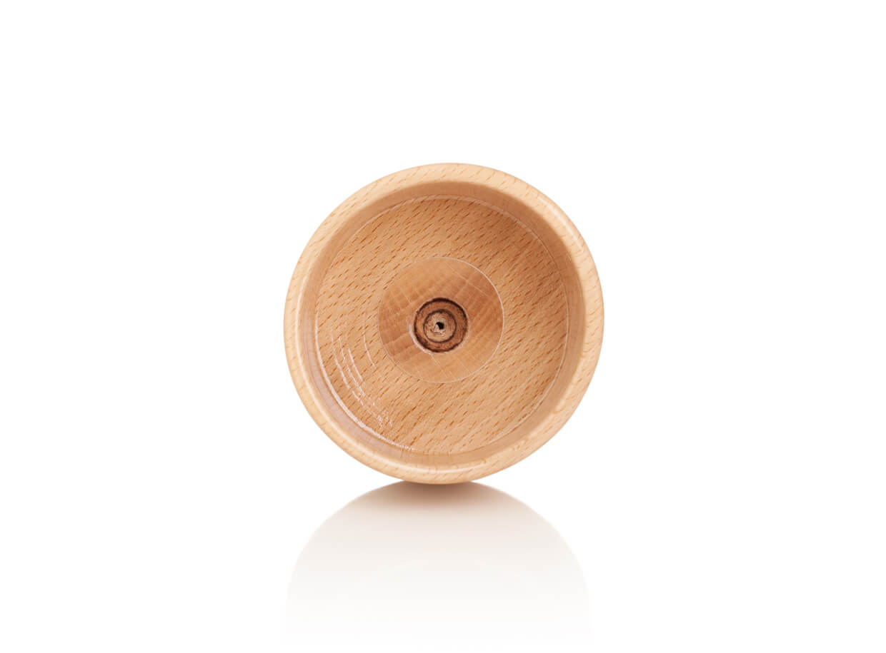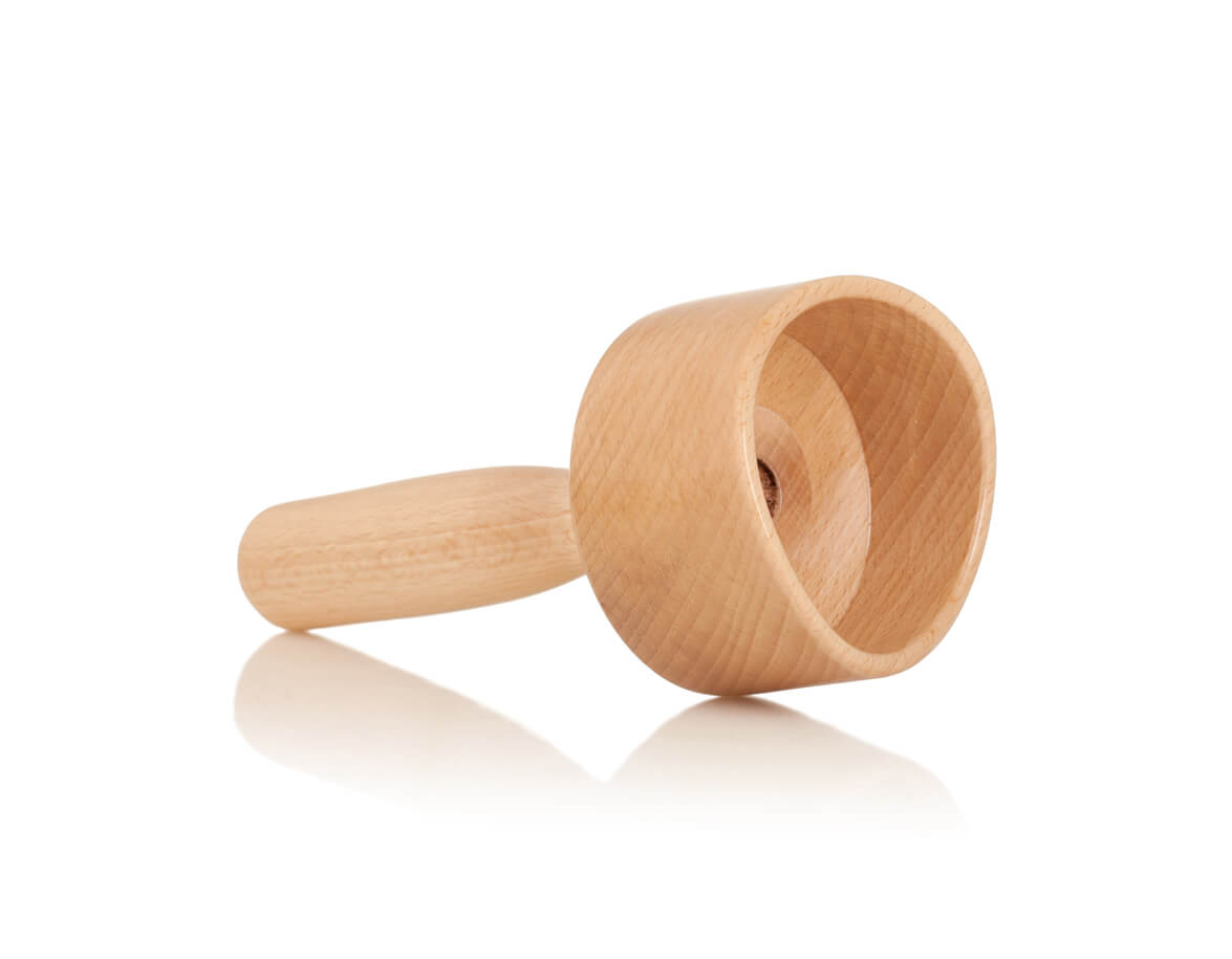 Baňka z lakovaného bukového dřeva o průměru 8 cm na maderoterapii. Masáž baňkou stimuluje tok lymfy, prokrvuje a vyhlazuje pokožku problematických částí těla s výskytem vyšší vrstvy podkožního tuku, celulitidy nebo povolené kůže. Díky dlouhé rukojeti se s baňkou dobře manipuluje.
