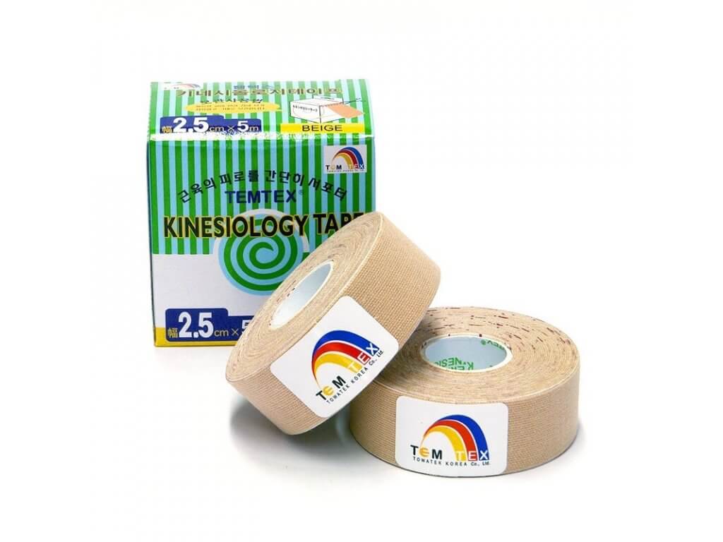Kinesiotaping z Jižní Korey TEMTEX. Až na 150 - 160% roztažitelný TEMTEX knesio tape se přikládá na bolestivý sval, nadzvedává pokožku, zmírňuje citlivost vůči bolesti, zvyšuje lymfatickou drenáž. TEMTEX kinesio tape je prodyšný a voděodolný. Nosným materiálem je 100% bavlna, obsahující speciální zdravotnické lepidlo bez přídavku léčiv. TEMTEX kinesio tape Classic je skladný až 2 roky při teplotě 10 - 25° a 40 - 70% vlhkosti. Barva: béžová