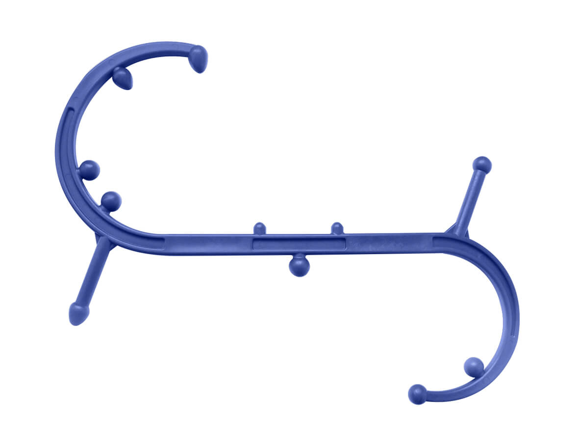 Masažér má ergonomický tvar S, díky kterému si dokážete promasírovat i obtížně dostupná místa na těle. Na jeho povrchu se nacházejí dva typy hrotů, které jsou určeny k důkladnému promasírování spoušťových bodů (trigger points), například na šíji, ramenech, zádech, nohou nebo chodidlech.