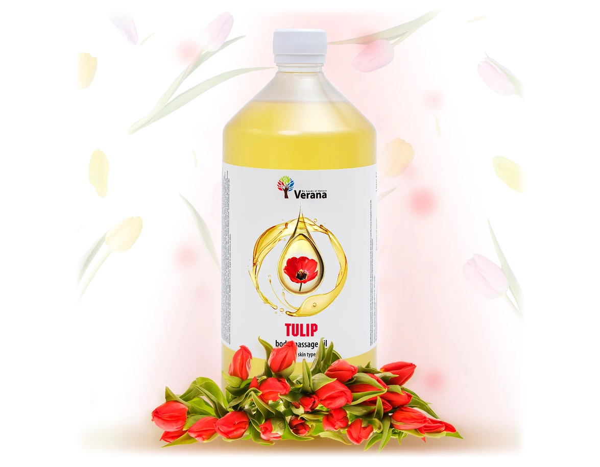 Masážní olej Tulipán s jemnou květinovou vůní, která během procedur podporuje relaxaci a komfort. Podporuje psychickou pohodu a zlepšuje náladu. Je vhodný pro všechny druhy masáží i aromaterapii.