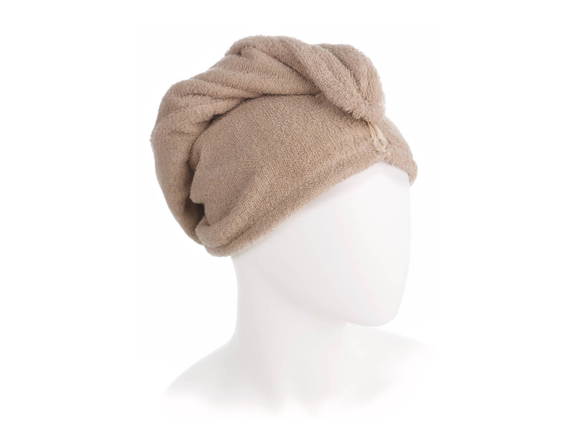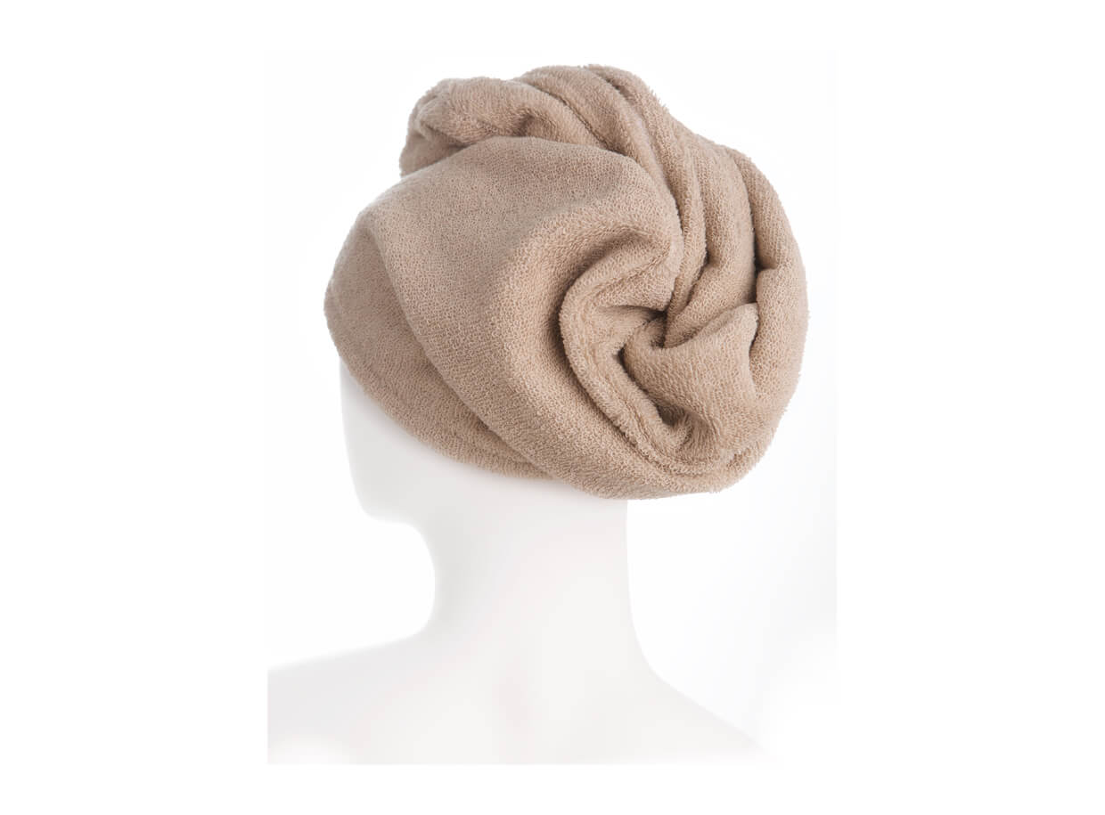 Turban je univerzální i díky neutrální přírodní barvě, používat jej mohou dámy i pánové, po koupeli nebo jako ochranu hlavy proti teplu během saunování.