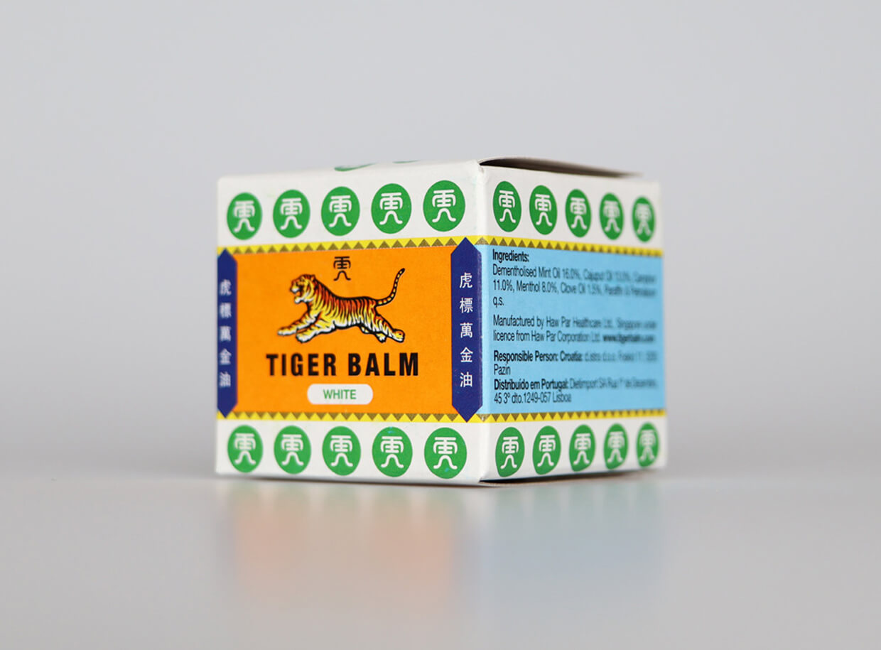 Bílá varianta TIGER BALM balzámu je tradičním řešením potíží spojených s nachlazením, bolestmi hlavy či bolestmi svalů a kloubů.