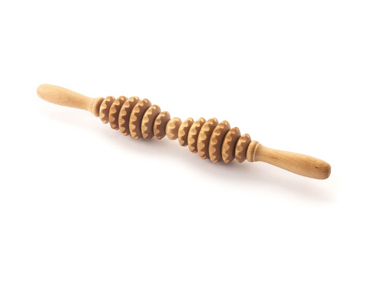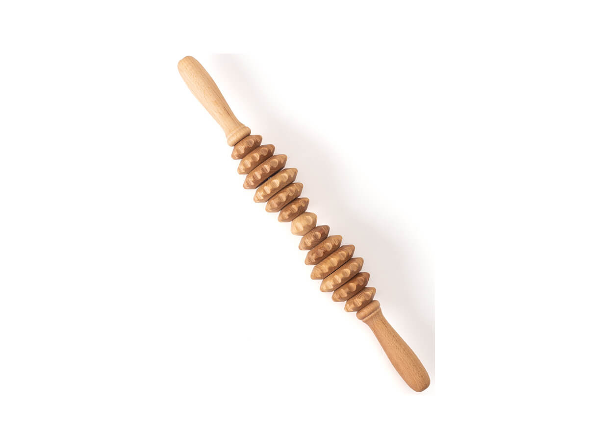 Masážní váleček je složen ze 13 ozubených koleček různých rozměrů z bukového dřeva. Tvarované rukojeti příjemně padnou do dlaní. Váleček je vhodný k ošetření problematických partií těla s výskytem vyšší vrstvy podkožního tuku, celulitidy a povolené kůže.