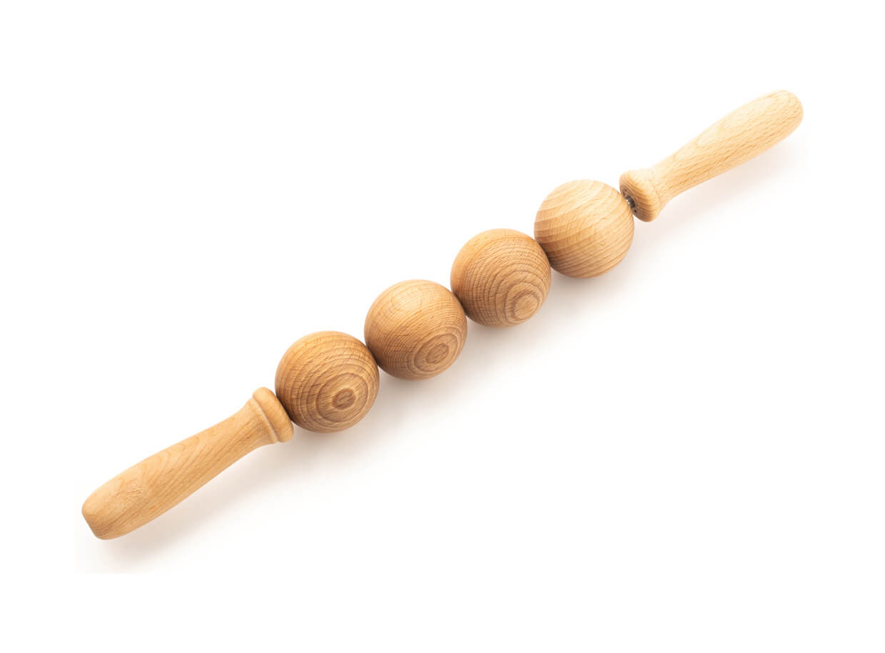 Masážní váleček složený ze 4 kuliček z bukového dřeva. Tvarované rukojeti příjemně padnou do dlaní. Váleček je vhodný k ošetření částí těla s výskytem celulitidy, povolené kůže a vyšší vrstvy podkožního tuku.