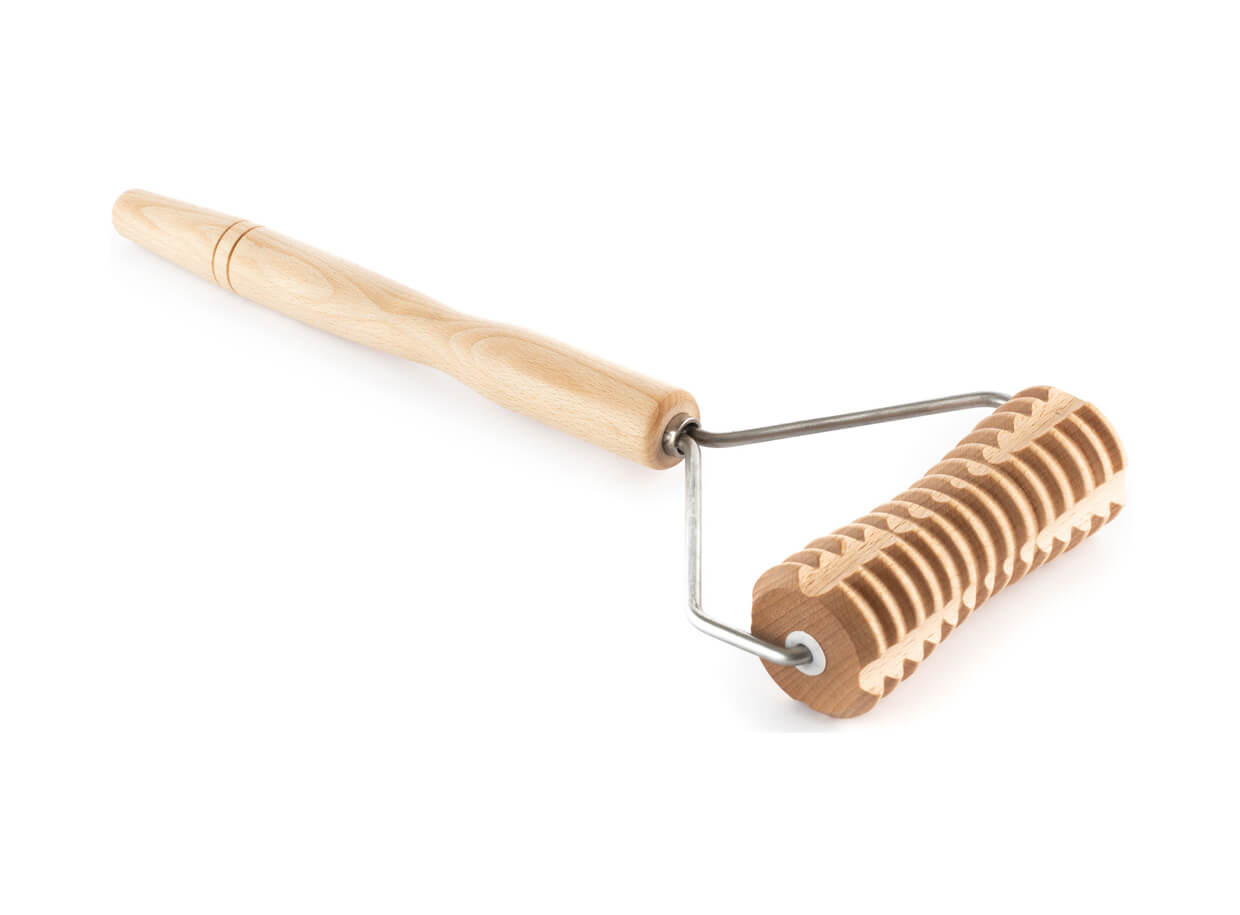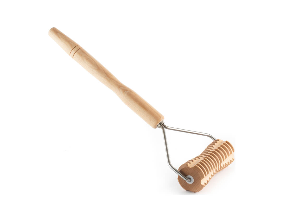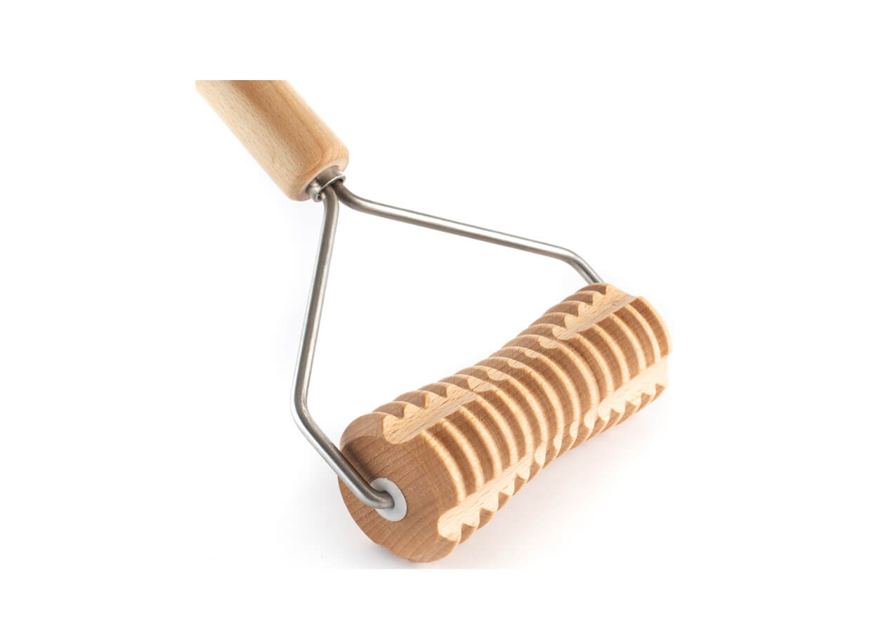 Rýhovaný masážní váleček z bukového dřeva s rukojetí ve tvaru Y. Rukojeť umožňuje vyvinout přiměřený tlak při masáži a dosáhnout pohodlně i na méně dostupné partie těla při automasáži.