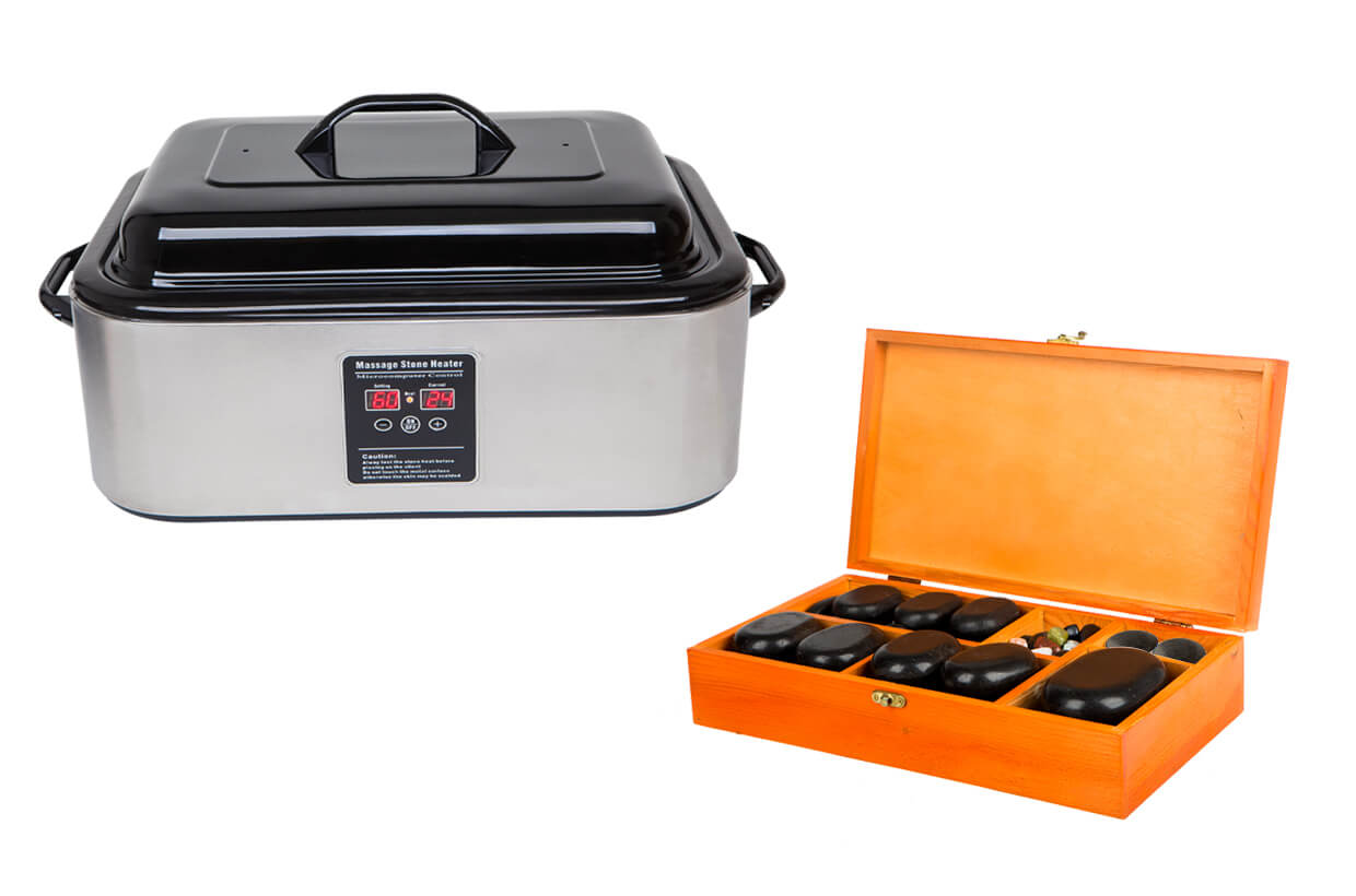 Ve výhodném setu s 10% slevou nabízíme digitální ohřívač lávových kamenů spolu se sadou lávových kamenů v praktické dřevěné krabičce. Hot Stones masáž nebo masáž lávovými kameny se řadí mezi luxusní masážní procedury. Příjemné teplo proniká hluboko do tkání masírované osoby, rychle ohřívá a prokrvuje pokožku, svalstvo, šlachy a klouby. Přitom se i ruce maséra prokrví, zahřejí a odpočinou si od rutinních tahů klasické masáže.