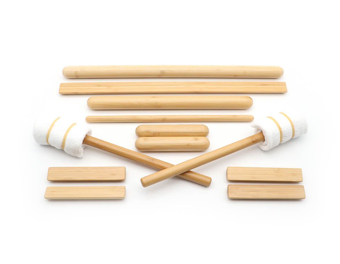 Sada 12 přírodních bambusových tyčí lisovaných za studena, jsou určeny k masáži celého těla.