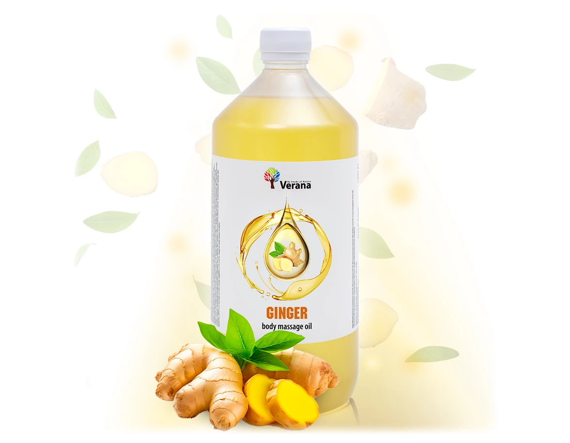 Extrakt z kořene zázvoru má antioxidační účinky, stimuluje cirkulaci krve a tonizuje pokožku. Účinně bojuje proti celulitidě, zpomaluje stárnutí pokožky a zmírňuje výskyt jemných vrásek. Masážní olej je směsí cenných rostlinných olejů, které udržují pokožku hydratovanou, vyživenou a zlepšují její elasticitu.
