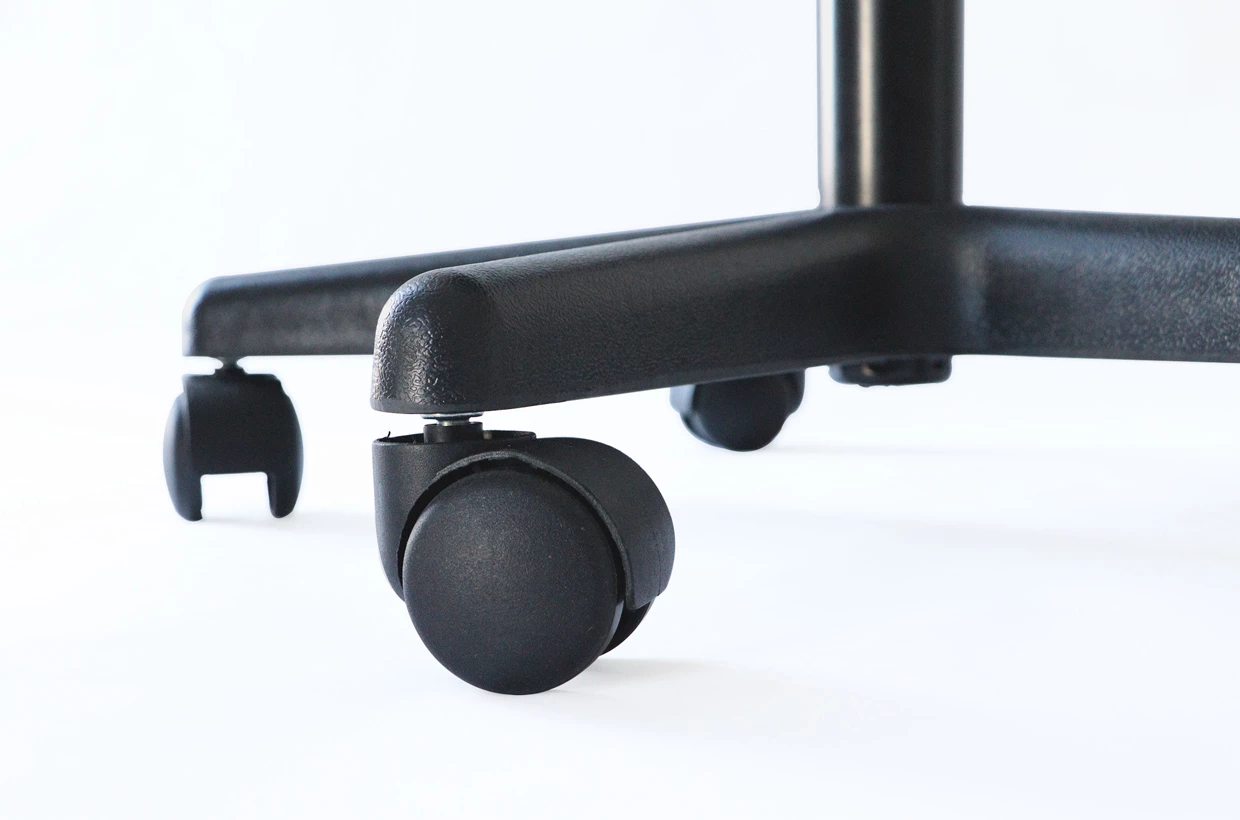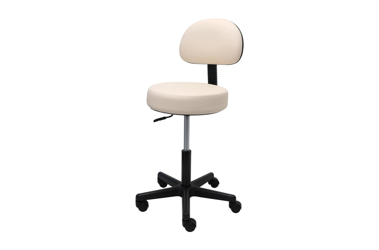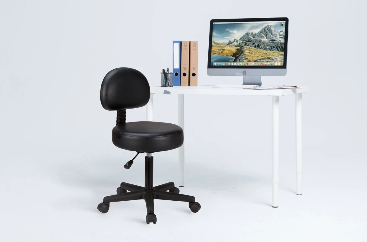 Praktická výškově nastavitelná židle s opěradlem zad. Lehký pohyb v prostoru zajišťuje 5 plastových koleček. Židle je pohodlná díky 9 cm vysokému čalounění sedáku s jemnou soft-touch koženkou a opěrce zad, která podpírá bederní část páteře.