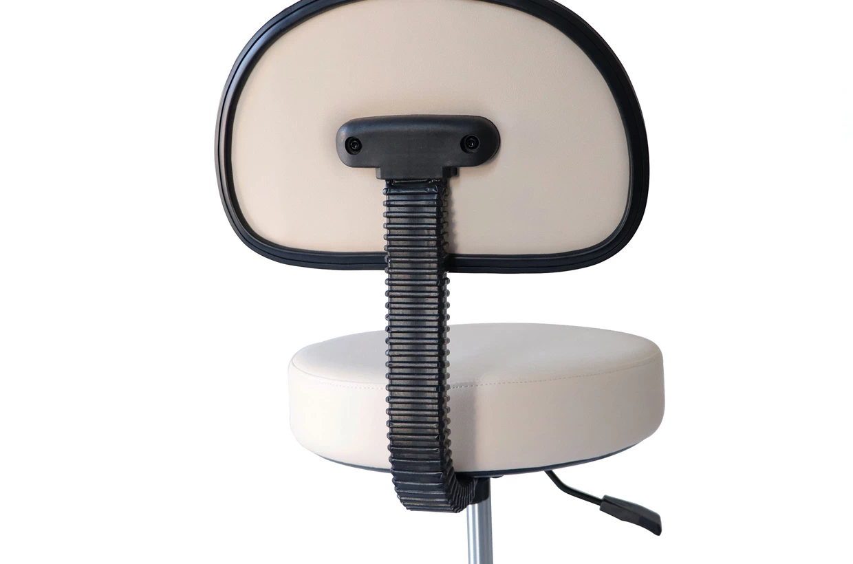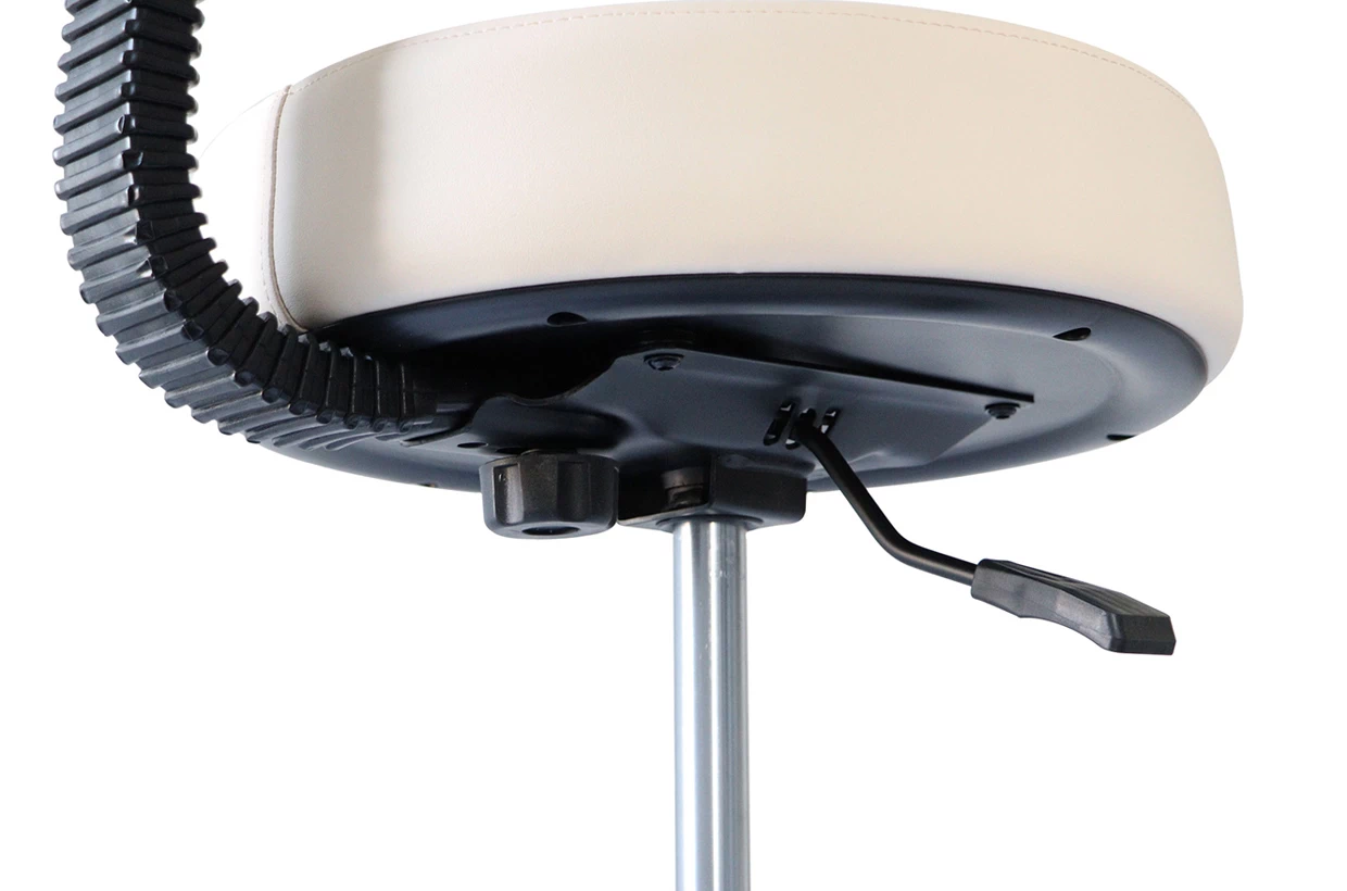 Výškové nastavení 47 – 63,5 cm je plynulé pomocí páčky pod sedadlem, kterou se ovládá plynový píst. Průměr kruhové sedací části 39 cm umožňuje pohodlný, ale také bezpečný sed, protože židle má nosnost až 120 kg.