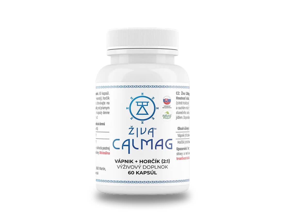 Doplněk stravy ŽIVA calmag jsou kapsle s vápníkem a hořčíkem v doporučeném optimálním poměru 2:1.